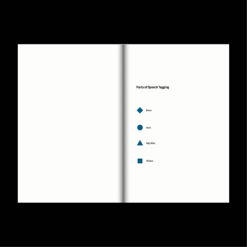 All semantic information are gathered from the text using Python, visualized using Processing for “type-setting” in Indesign.
