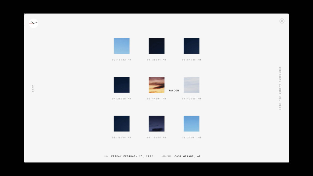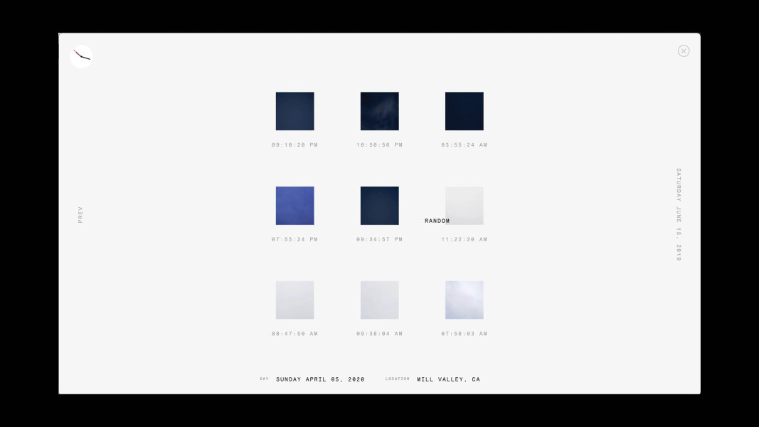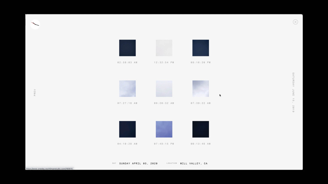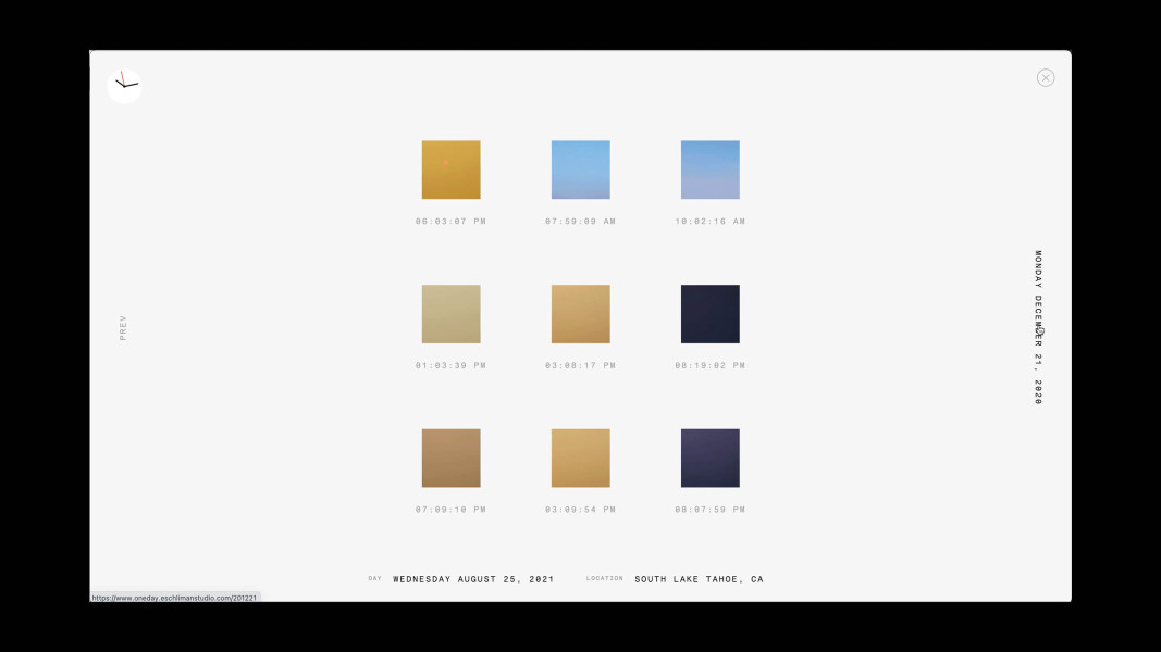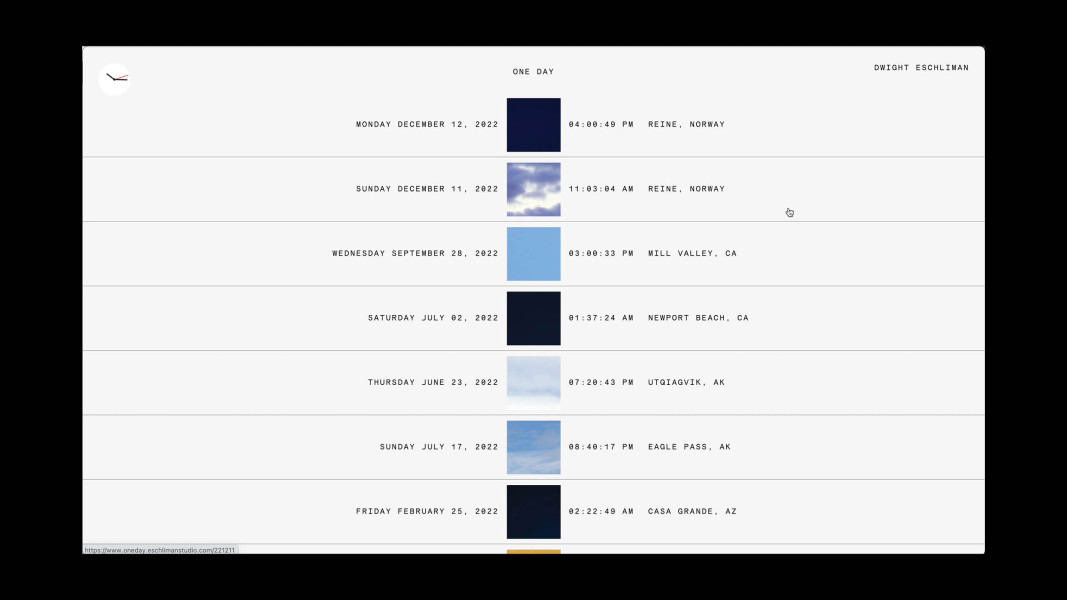 Design and development for Dwight Eschliman's One Day project. The photographer takes snapshots of each second in a day at various locations around the world. These images make up a portrait of a day.